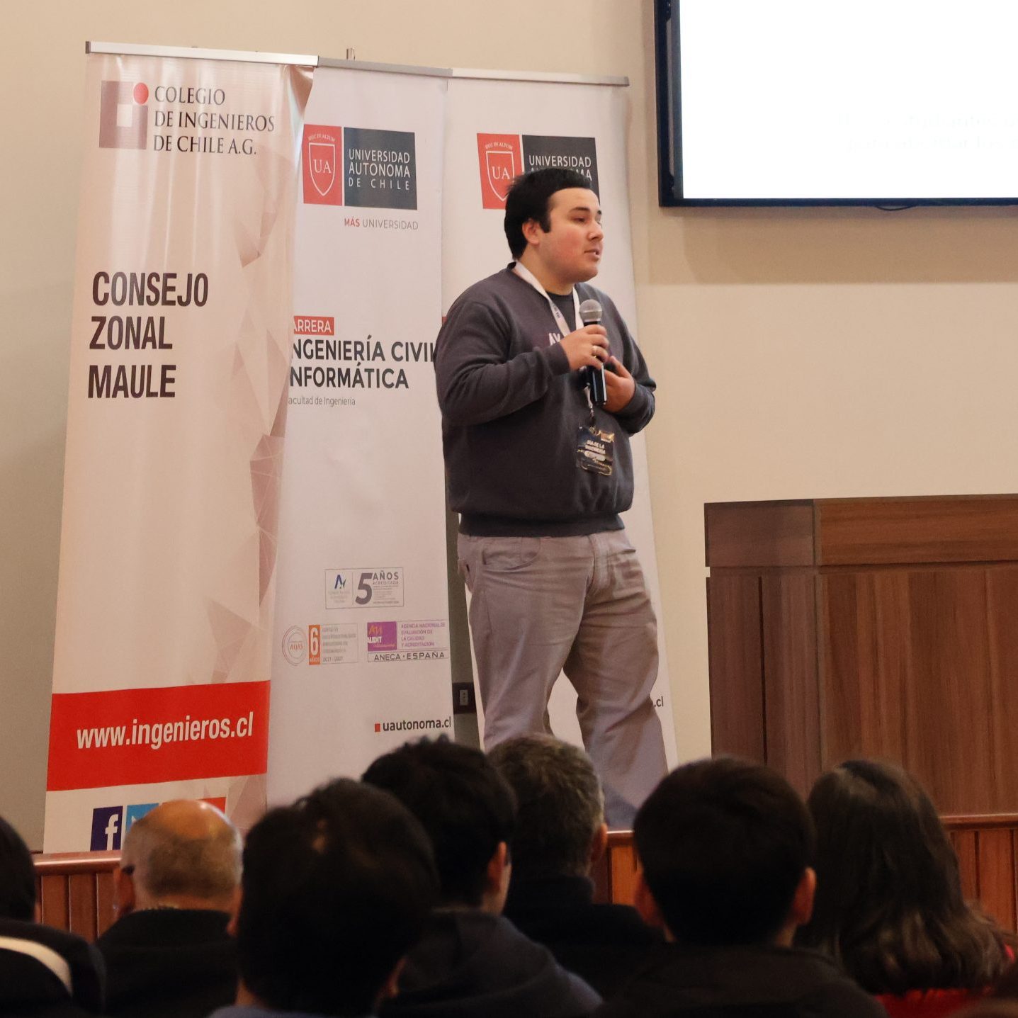 El encuentro contó con ponencias de destacadas figuras del ámbito académico y gremial, como el Dr. Felipe Besoain, académico del Departamento de Visualización Interactiva y Realidad Virtual de la Universidad de Talca; la Dra. Patricia Möller, docente investigadora de la Universidad Autónoma de Chile; y Mario Molina, presidente del Colegio de Ingenieros Zonal Maule.