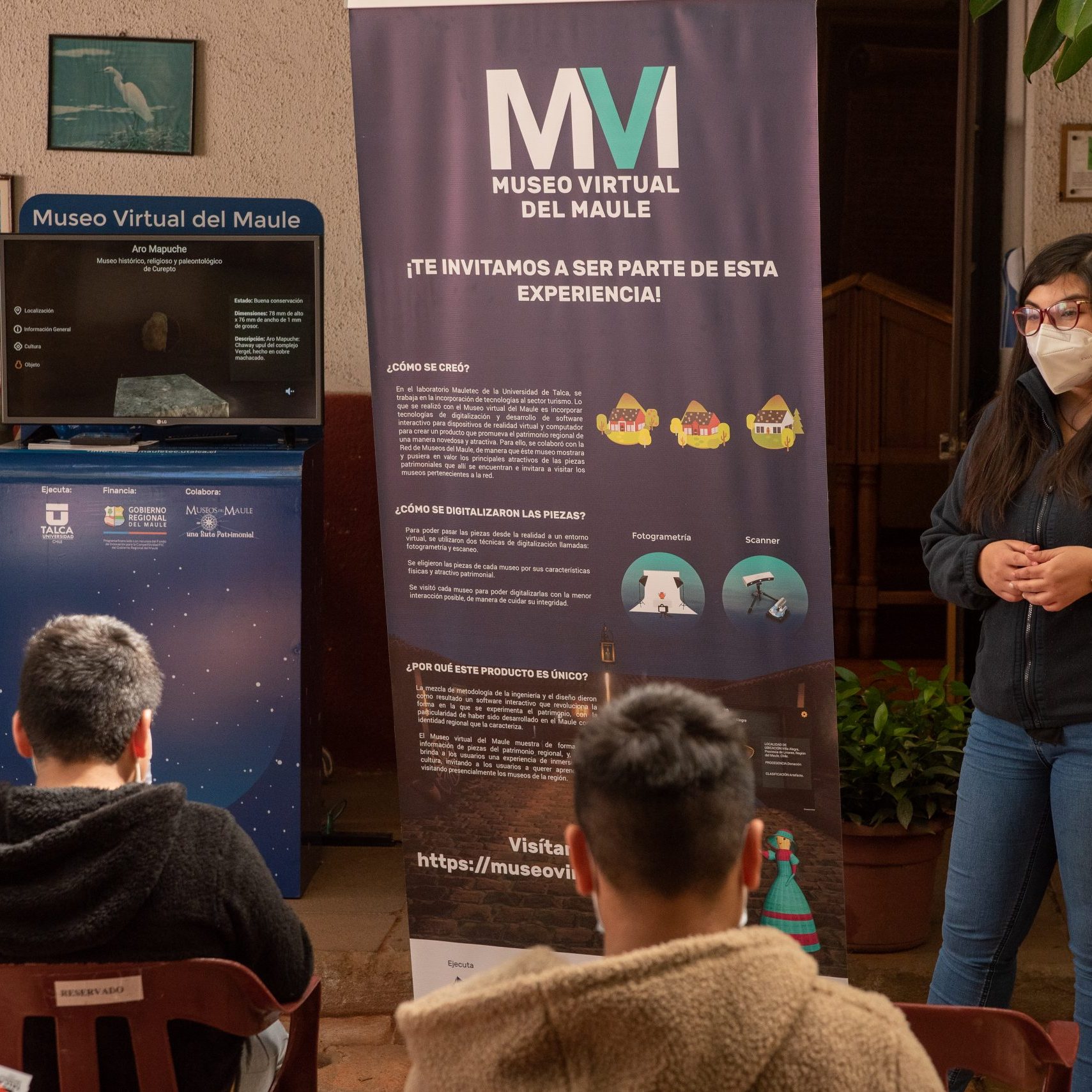 Producto digital desarrollado íntegramente en el Maule con la colaboración de los museos regionales. Esta experiencia invita a los usuarios a explorar digitalmente un espacio único, que posee una selección de diferentes piezas que se encuentran alojadas en los museos de la región del Maule. El software consta de 4 colecciones y está disponible para ser visualizados en Realidad Virtual y computador.